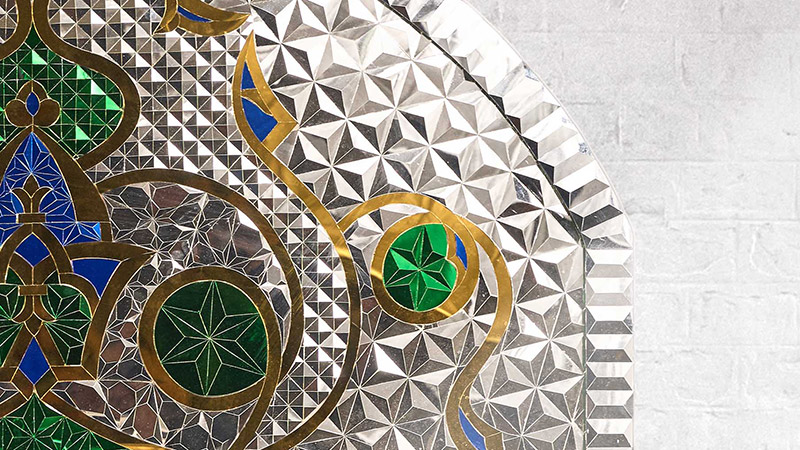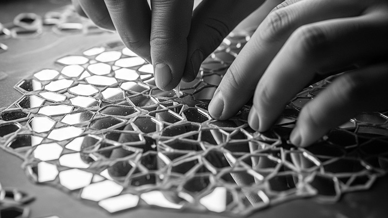 Aineh-Kari, or mirror-work, is an enchanting Persian decorative art that transforms surfaces into shimmering tapestries of reflected light and intricate geometry. Originating as an ingenious way to utilize broken mirror pieces, it evolved into a sophisticated craft where carefully cut fragments of mirror are meticulously arranged and affixed to create dazzling patterns, often adorning palace interiors and sacred spaces. The interplay of reflections creates a sense of endless depth and kaleidoscopic beauty.