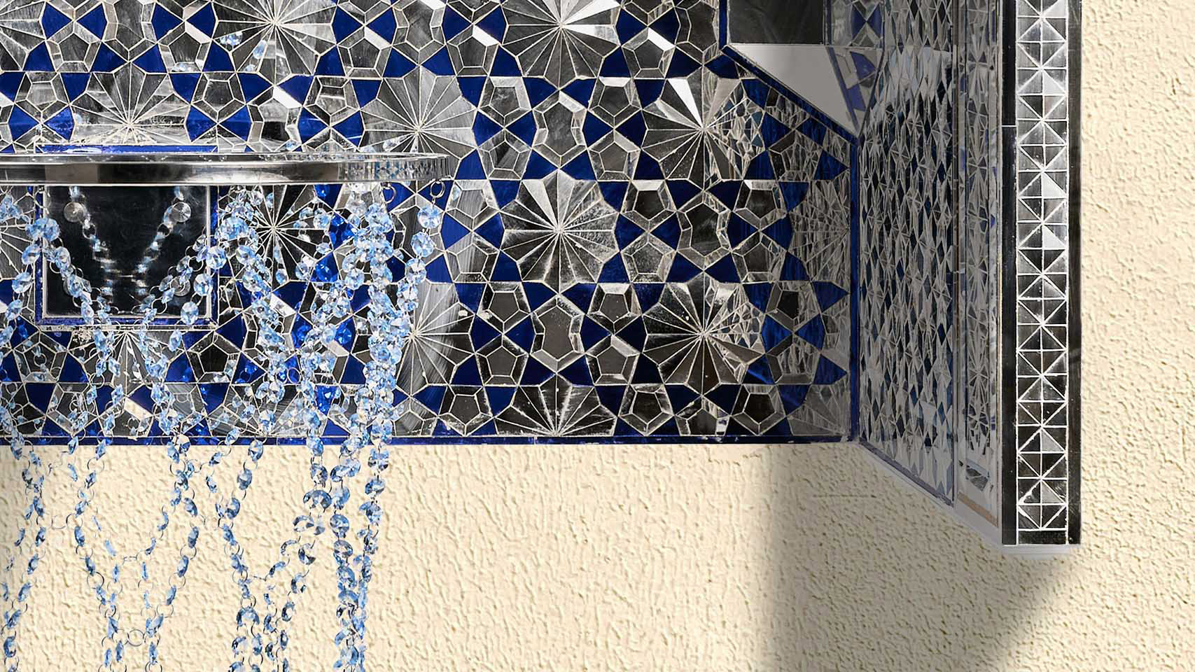 The fusion of Muqarnas (stalactite vaulting) and Aineh-Kari (mirror-work) creates an almost otherworldly experience in Persian architecture, embodying celestial aspirations and infinite beauty. Muqarnas builds complex, three-dimensional forms that seem to cascade downwards, while Aineh-Kari infuses these structures with shimmering light, fragmenting reflections into dazzling, kaleidoscopic patterns. Together, they create spaces that are both geometrically profound and visually ethereal, inviting contemplation and wonder